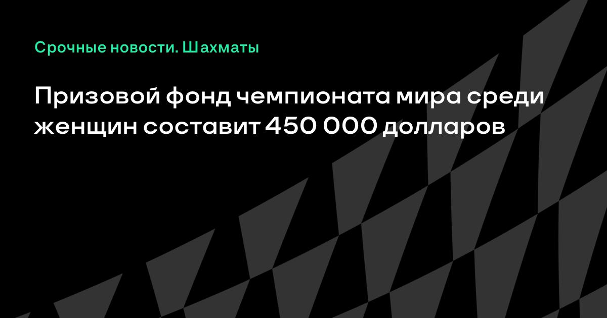 Призовой фонд чемпионата мира по шахматам среди женщин, который пройдет с 28 августа по 18 сентября в Нальчике, составит 450 тысяч долларов. Победительница чемпионата станет богаче на 60 000.