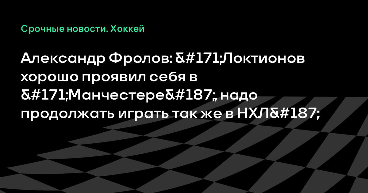 Александр Фролов: «Локтионов хорошо проявил себя в «Манчестере», надо продолжать играть так же в НХЛ»