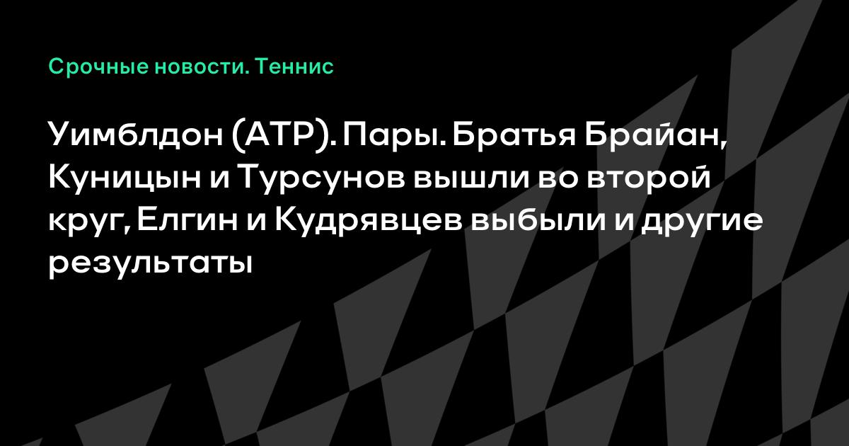 Уимблдон (АТР). Пары. Братья Брайан, Куницын и Турсунов вышли во второй круг, Елгин и Кудрявцев выбыли и другие результаты