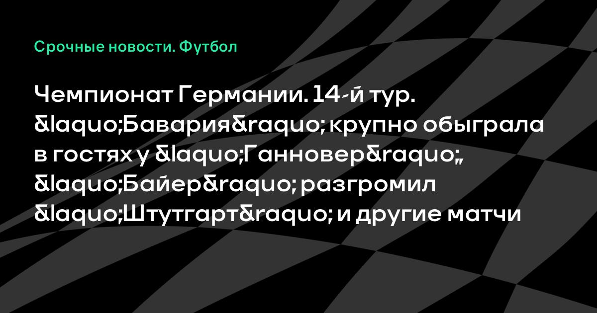 Чемпионат Германии. 14-й тур. «Бавария» крупно обыграла в гостях у «Ганновер», «Байер» разгромил «Штутгарт» и другие матчи