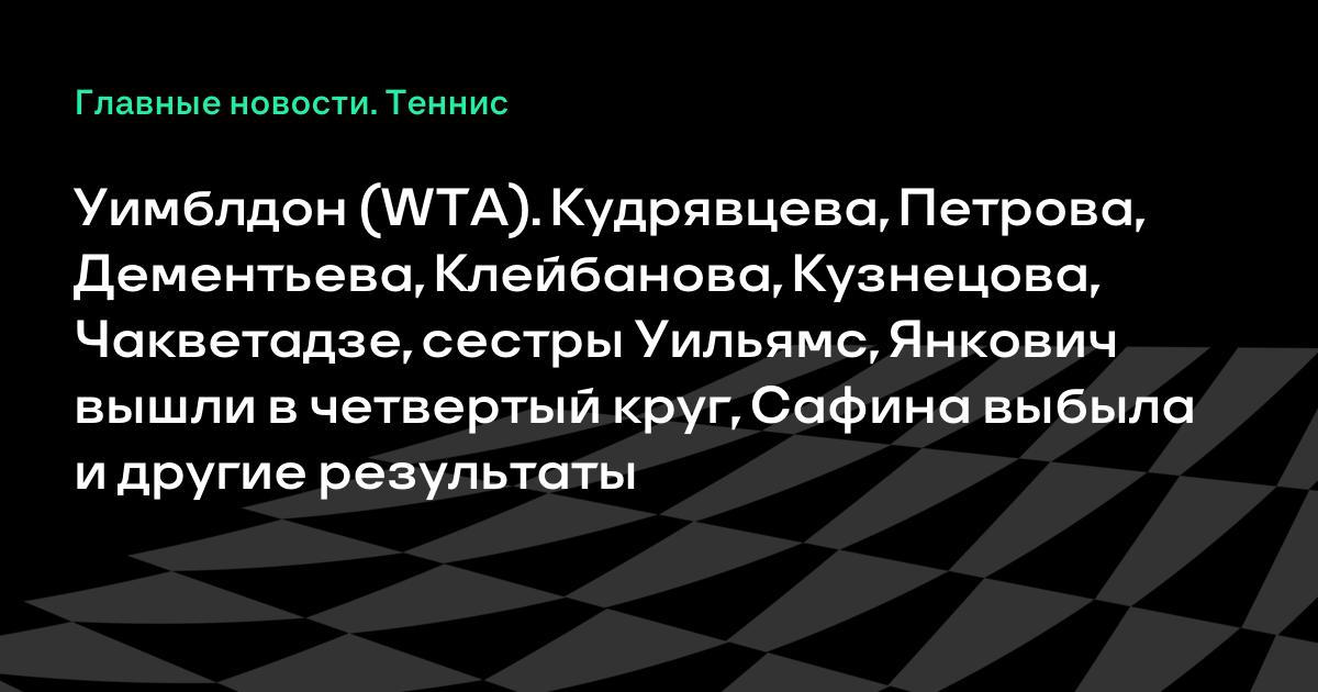 Уимблдон (WTA). Кудрявцева, Петрова, Дементьева, Клейбанова, Кузнецова, Чакветадзе, сестры Уильямс, Янкович вышли в четвертый круг, Сафина выбыла и другие результаты