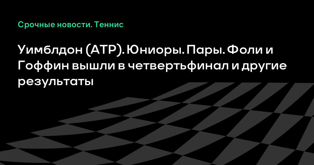 Уимблдон (АТР). Юниоры. Пары. Фоли и Гоффин вышли в четвертьфинал и другие результаты