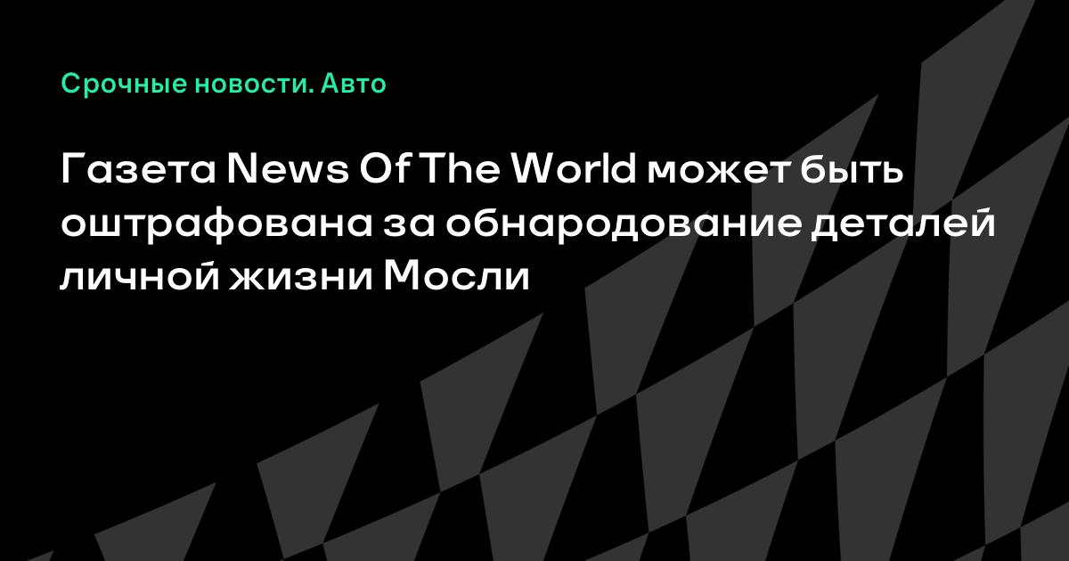 Макс Мосли будет требовать взыскание штрафных акций с газеты News Of The World, разместившей на своих страницах интимные подробности личной жизни президента ФИА. Адвокаты газеты хотели доказать, что Мосли имеет право требовать только компенсацию, но суд отклонил их просьбу. При этом судья заявил, что данная сфера юриспруденции пока не достаточно развита, поэтому окончательное решение будет вынесено только, когда все детали дела будут тщательно изучены. Слушания пройдут на следующей неделе, сообщает The Times
