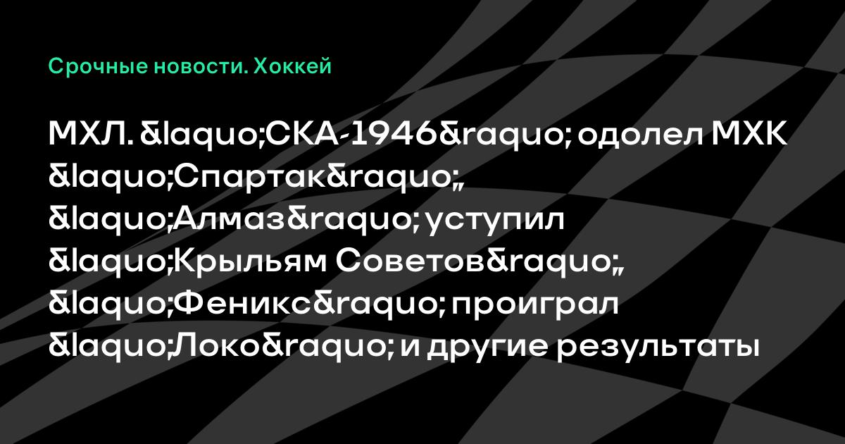 МХЛ. «СКА-1946» одолел МХК «Спартак», «Алмаз» уступил «Крыльям Советов», «Феникс» проиграл «Локо» и другие результаты