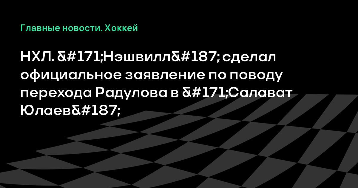 Как ранее сообщал Sports.ru, нападающий «Нэшвилла» Александр Радулов подписал трехлетний контракт с «Салаватом Юлаевым». Генеральный менеджер «хищников» Дэвид Пойл сделал официальное заявление по этому поводу.