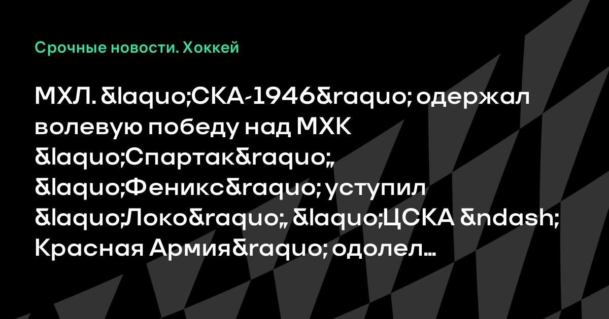 МХЛ. «СКА-1946» одержал волевую победу над МХК «Спартак», «Феникс» уступил «Локо», «ЦСКА – Красная Армия» одолел «Мытищинских Атлантов» и другие результаты