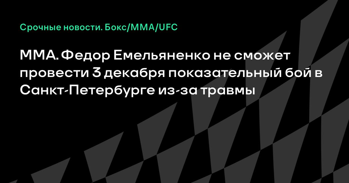 MMA. Федор Емельяненко не сможет провести 3 декабря показательный бой в Санкт-Петербурге из-за травмы