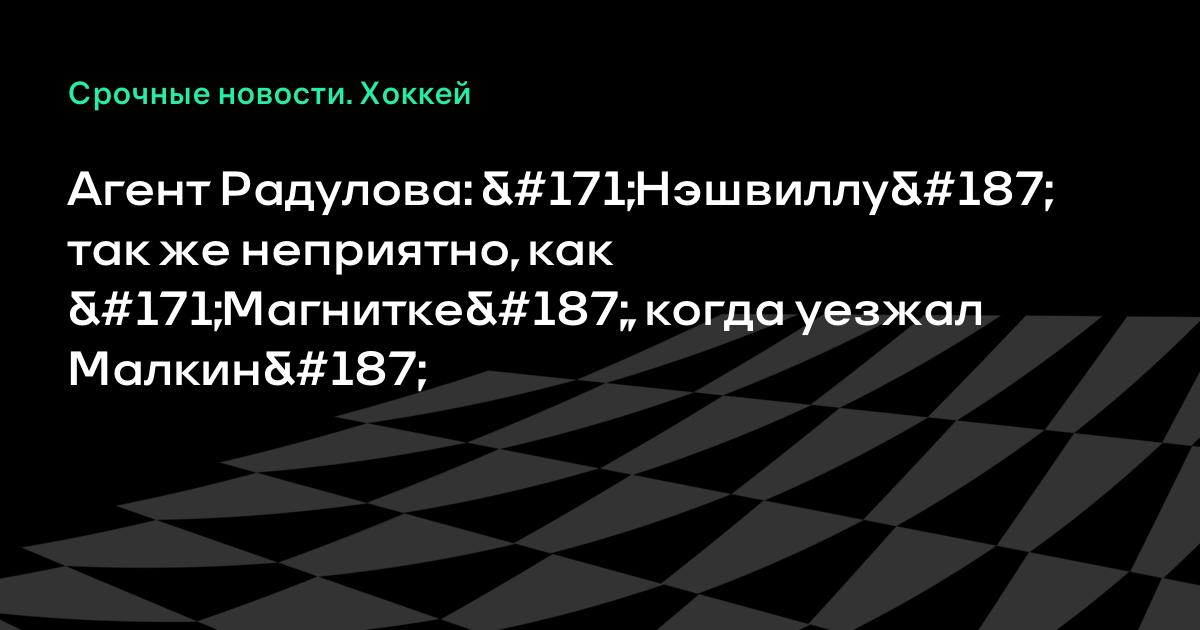 Агент Радулова: «Нэшвиллу» так же неприятно, как «Магнитке», когда уезжал Малкин»