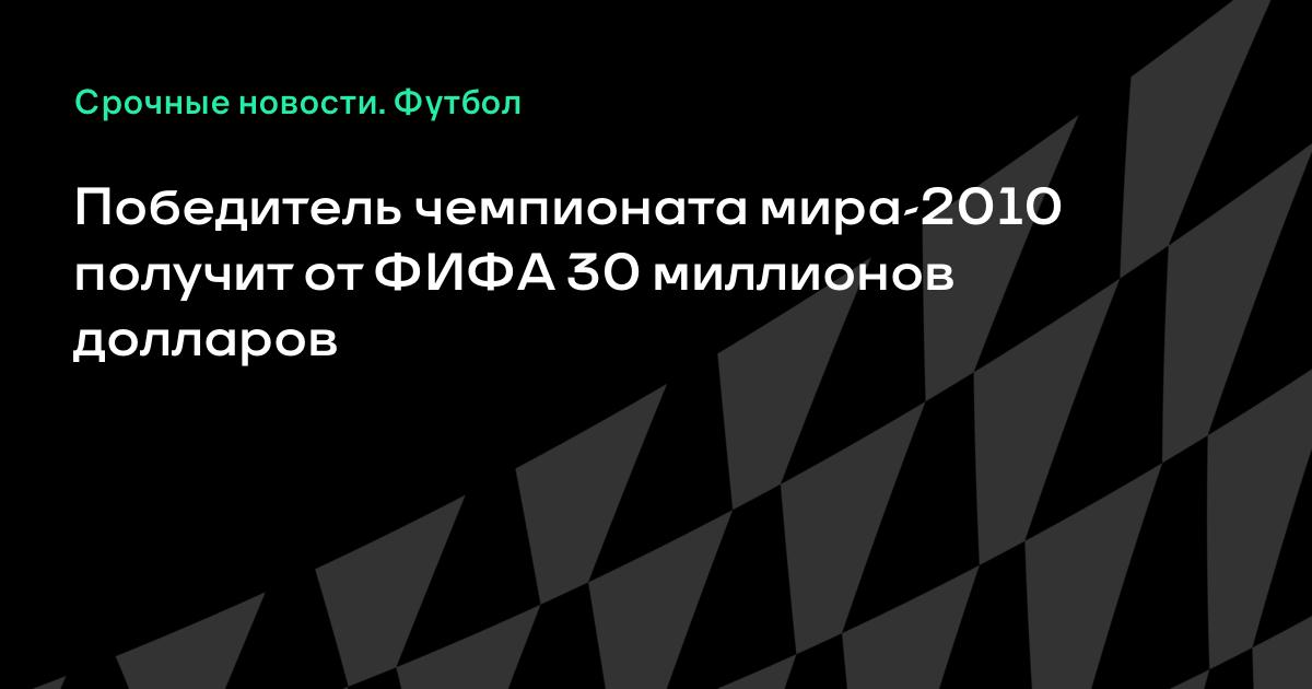 ФИФА объявила размеры денежных вознаграждений для команд-участниц ЧМ-2010. Победитель турнира получит 30 миллионов долларов, а финалист 24 миллиона. Команда, которая займет последнее место, получит не менее 9 миллионов.