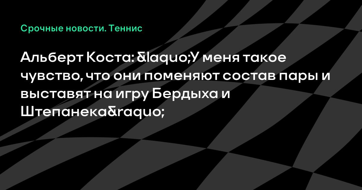 Что касается чешской команды, прежде всего, мы должны уважать состав, который объявлен. Но у меня есть такое чувство, что они поменяют состав пары и выставят на игру Бердыха и Штепанека», цитирует Косту Reuters.