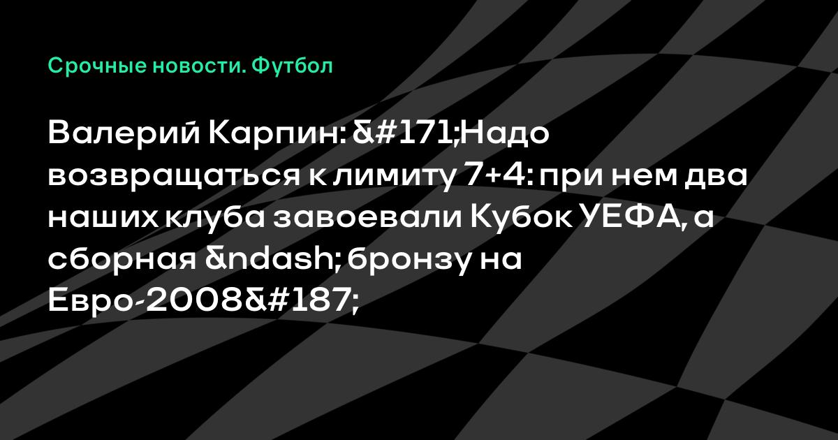 Если брать сухие цифры, то при лимите 7+4 два наших клуба завоевали Кубок УЕФА, а сборная бронзу на Евро-2008. При лимите 6+5 наши четыре клуба вылетели из Лиги Европы. Если говорить о молодых игроках, то нет конкуренции. Появится больше талантливых игроков, если они будут биться за попадание в состав, а не получать подарки. Загонять себя в рамки нет смысла. Во всей Европе рынок расширяется, а мы, наоборот, его сужаем. С экономической точки зрения это невыгодно», приводит мнение Карпина РИА Новости.