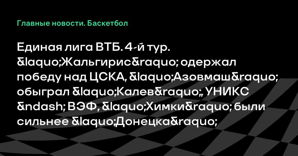 Единая лига ВТБ. 4-й тур. «Жальгирис» одержал победу над ЦСКА, «Азовмаш» обыграл «Калев», УНИКС – ВЭФ, «Химки» были сильнее «Донецка»