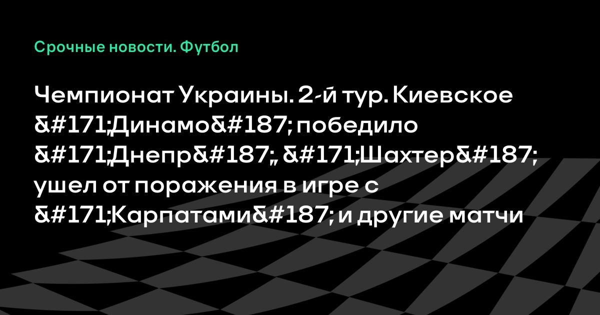 Чемпионат Украины. 2-й тур. Киевское «Динамо» победило «Днепр», «Шахтер» ушел от поражения в игре с «Карпатами» и другие матчи
