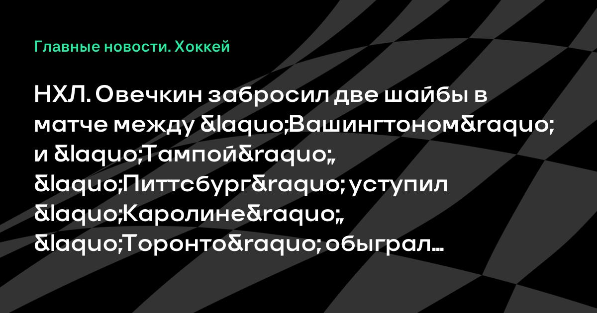 НХЛ. Овечкин забросил две шайбы в матче между «Вашингтоном» и «Тампой», «Питтсбург» уступил «Каролине», «Торонто» обыграл «Атланту» и другие результаты
