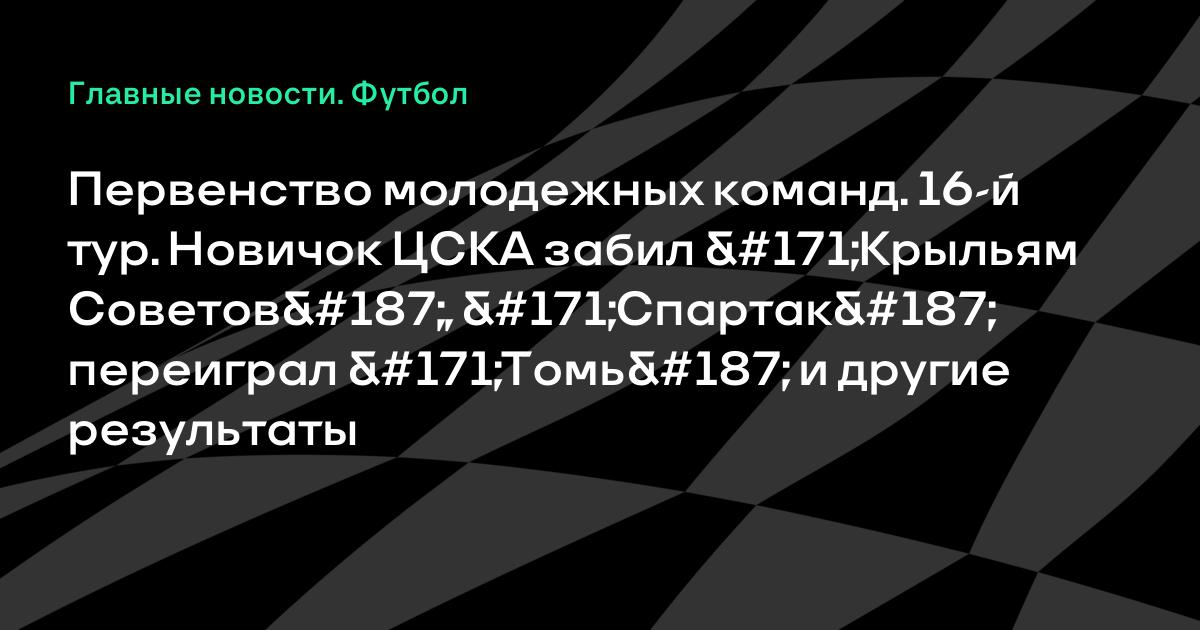 Первенство молодежных команд. 16-й тур. Новичок ЦСКА забил «Крыльям Советов», «Спартак» переиграл «Томь» и другие результаты