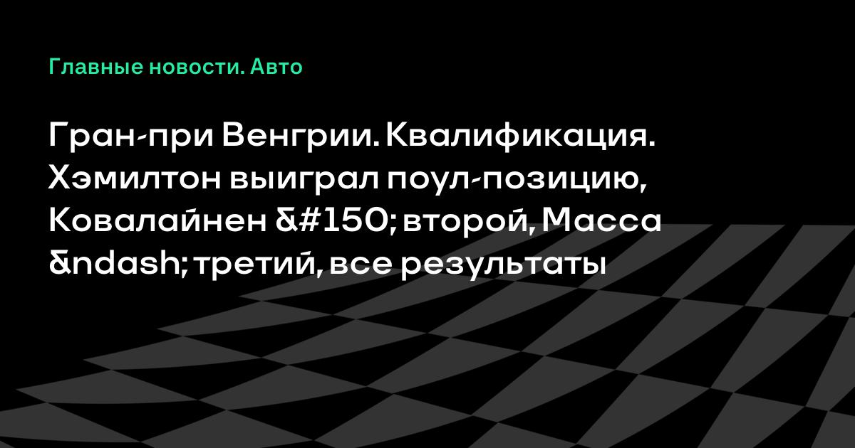 Гран-при Венгрии. Квалификация. Хэмилтон выиграл поул-позицию, Ковалайнен второй, Масса – третий, все результаты