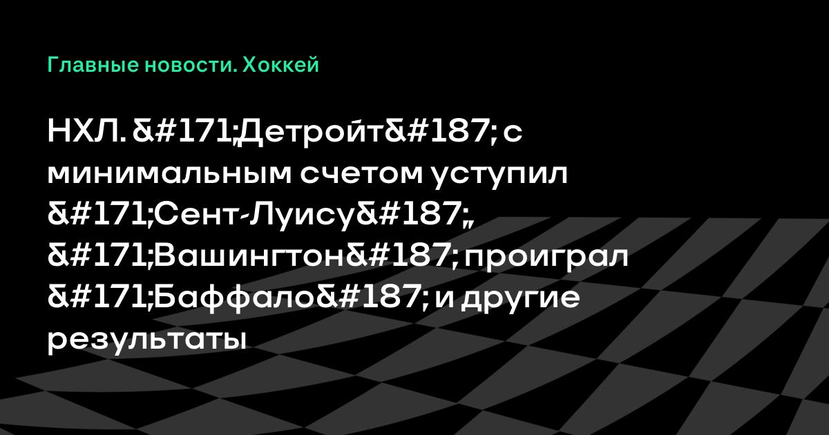 НХЛ. «Детройт» с минимальным счетом уступил «Сент-Луису», «Вашингтон» проиграл «Баффало» и другие результаты