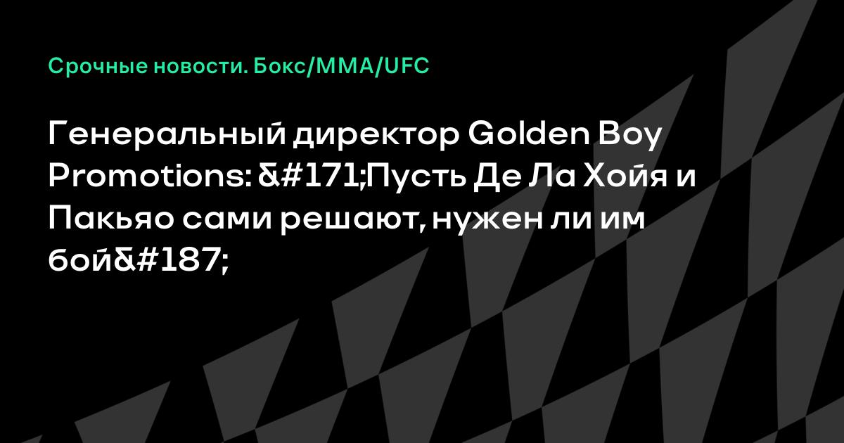 Генеральный директор Golden Boy Promotions: «Пусть Де Ла Хойя и Пакьяо сами решают, нужен ли им бой»