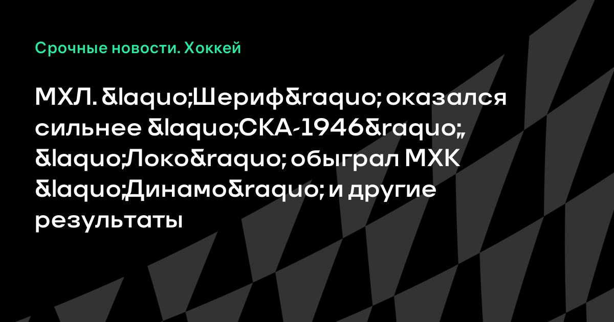 МХЛ. «Шериф» оказался сильнее «СКА-1946», «Локо» обыграл МХК «Динамо» и другие результаты