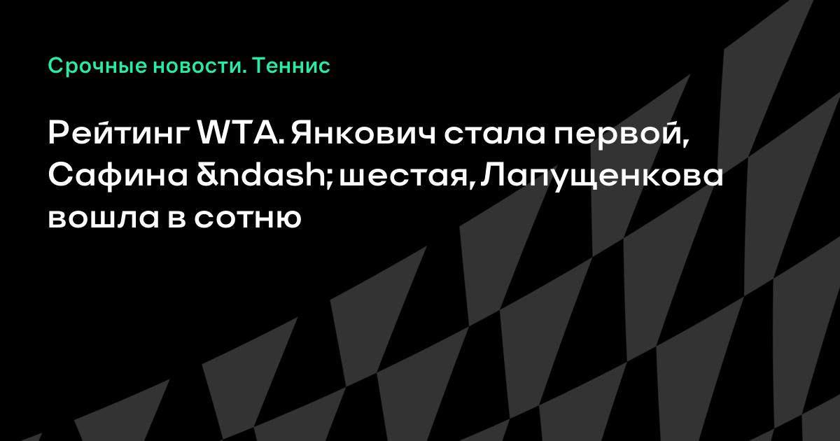 Рейтинг WTA. Янкович стала первой, Сафина – шестая, Лапущенкова вошла в сотню