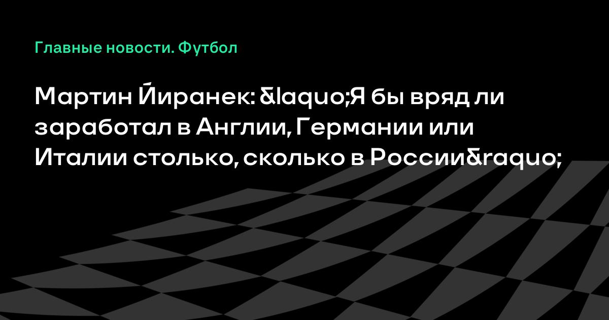 Мартин Йиранек: «Я бы вряд ли заработал в Англии, Германии или Италии столько, сколько в России»