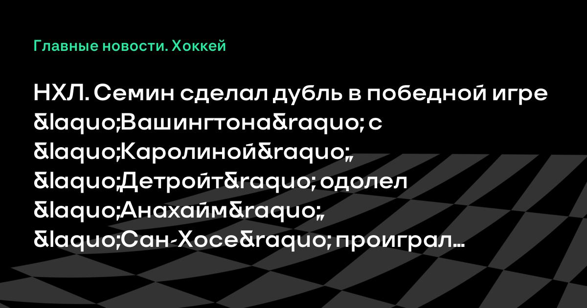НХЛ. Семин сделал дубль в победной игре «Вашингтона» с «Каролиной», «Детройт» одолел «Анахайм», «Сан-Хосе» проиграл «Далласу» и другие результаты
