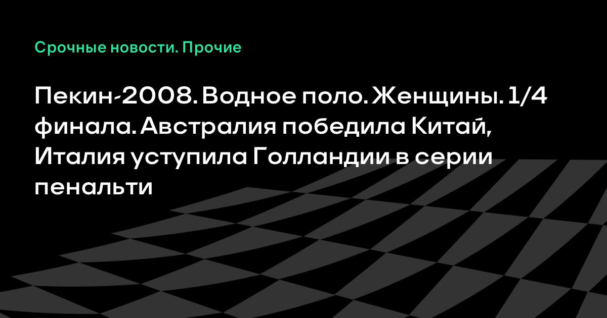 15 августа 2008, 14:21 Пекин-2008. Водное поло. Женщины. Россия уступила в третьем матче подряд, Италия победила Китай и другие матчи 5