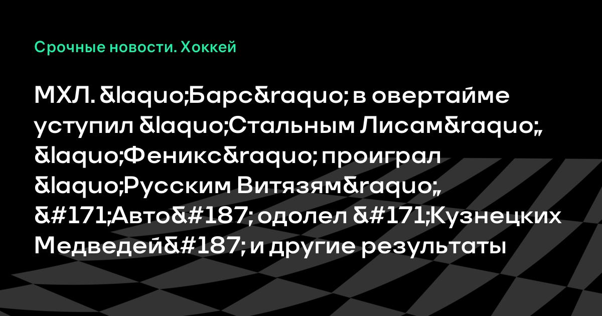 МХЛ. «Барс» в овертайме уступил «Стальным Лисам», «Феникс» проиграл «Русским Витязям», «Авто» одолел «Кузнецких Медведей» и другие результаты
