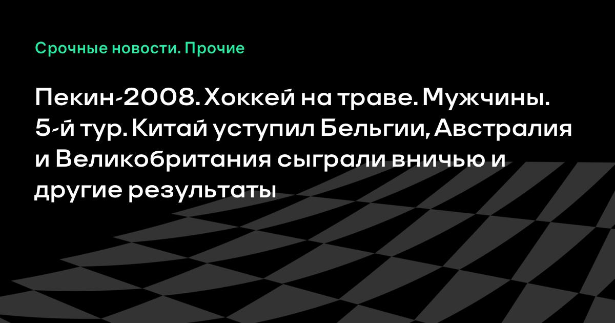 Пекин-2008. Хоккей на траве. Мужчины. 5-й тур. Китай уступил Бельгии, Австралия и Великобритания сыграли вничью и другие результаты