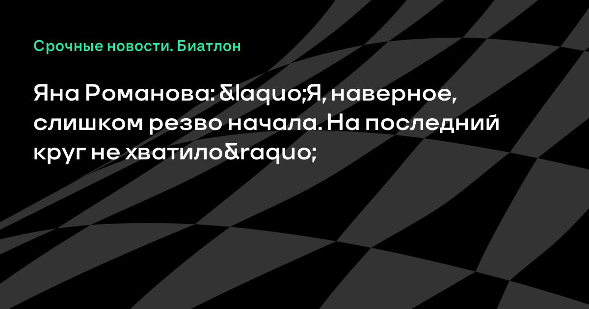Стрельба всегда была моим коньком в биатлоне, но в этом году, к сожалению, что-то не складывается. Но я попыталась сделать все, что могу. Колоссальная ответственность не только за себя, но и за всю команду. Мне доверили и я старалась», рассказала Романова в прямом эфире телеканала «Спорт».