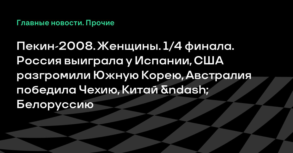 Пекин-2008. Женщины. 1/4 финала. Россия выиграла у Испании, США разгромили Южную Корею, Австралия победила Чехию, Китай – Белоруссию