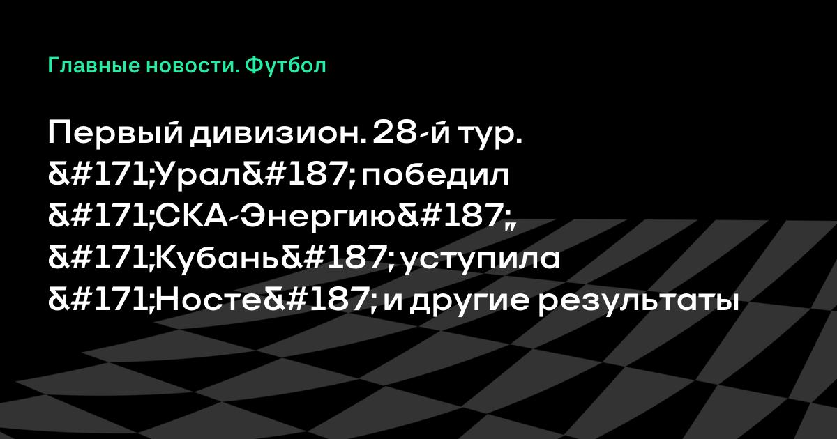 Первый дивизион. 28-й тур. «Урал» победил «СКА-Энергию», «Кубань» уступила «Носте» и другие результаты
