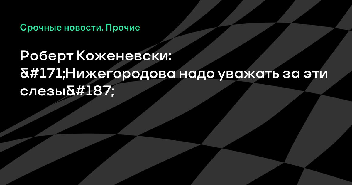 Роберт Коженевски: «Нижегородова надо уважать за эти слезы»