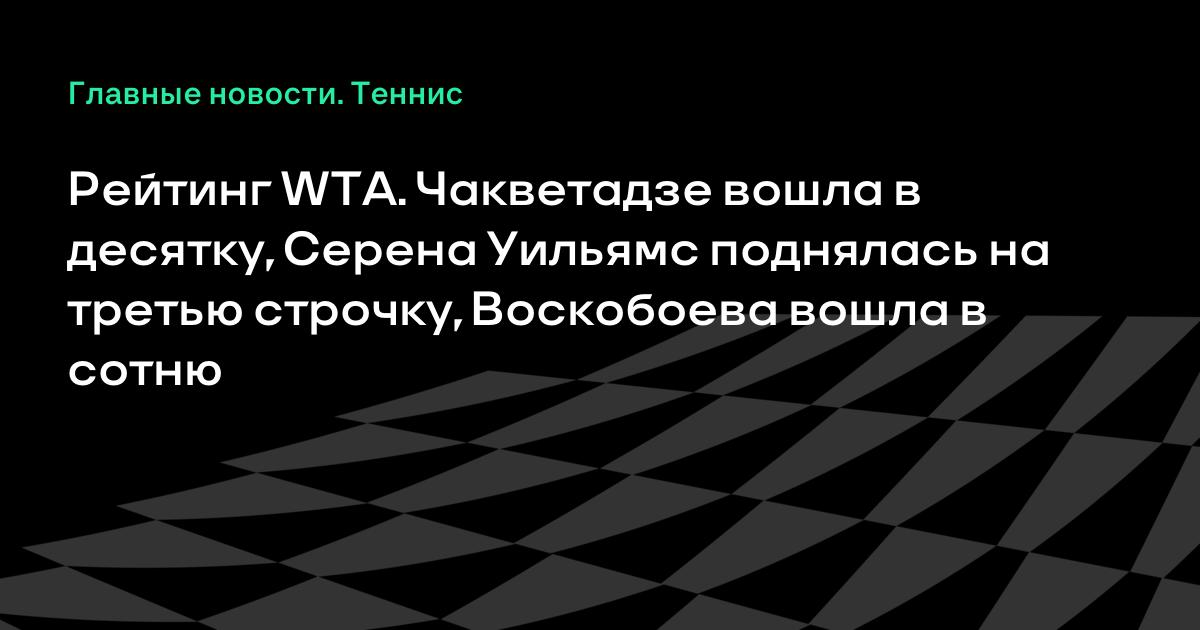 Рейтинг WTA. Чакветадзе вошла в десятку, Серена Уильямс поднялась на третью строчку, Воскобоева вошла в сотню