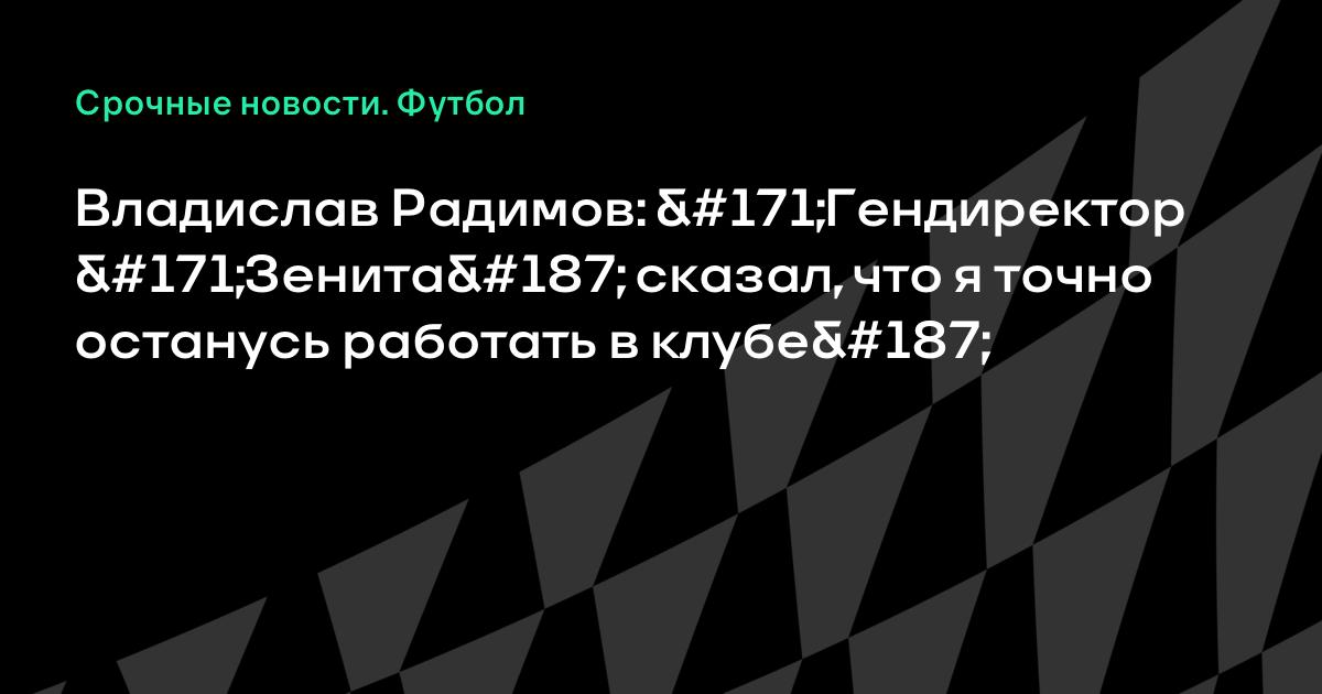 Владислав Радимов: «Гендиректор «Зенита» сказал, что я точно останусь работать в клубе»