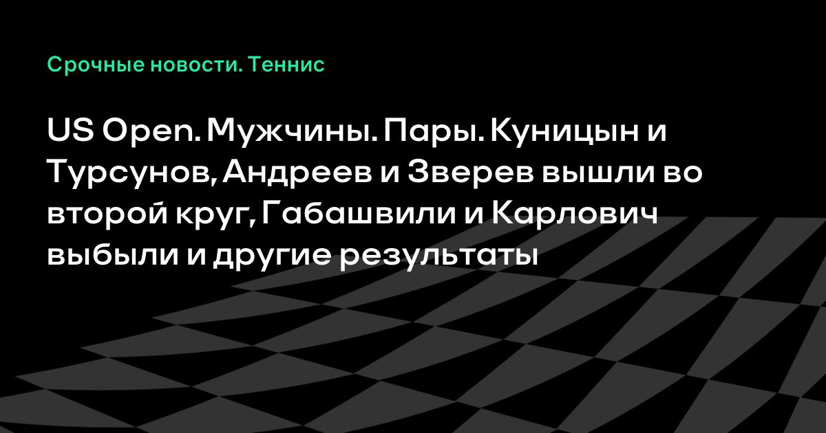 US Open. Мужчины. Пары. Куницын и Турсунов, Андреев и Зверев вышли во второй круг, Габашвили и Карлович выбыли и другие результаты