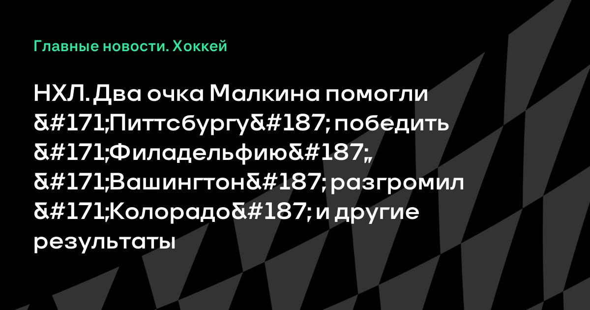НХЛ. Два очка Малкина помогли «Питтсбургу» победить «Филадельфию», «Вашингтон» разгромил «Колорадо» и другие результаты