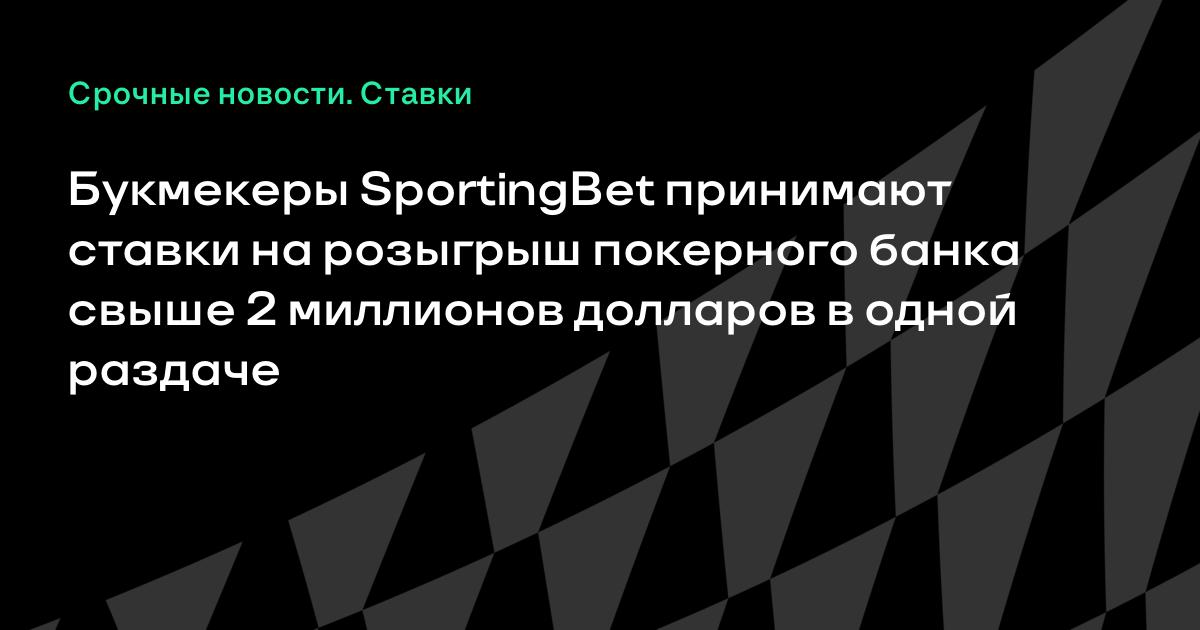 Букмекеры SportingBet принимают ставки на розыгрыш покерного банка свыше 2 миллионов долларов в одной раздаче