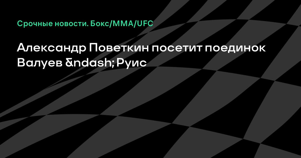 Российский супертяжеловес Александр Поветкин собирается 30 августа отправиться в Германию, чтобы поддержать экс-чемпиона мира Николая Валуева, который в бою с американцем Джоном Руисом попытается завоевать временный титул WBA в супертяжелом весе, сообщает сайт Федерации профессионального бокса России.