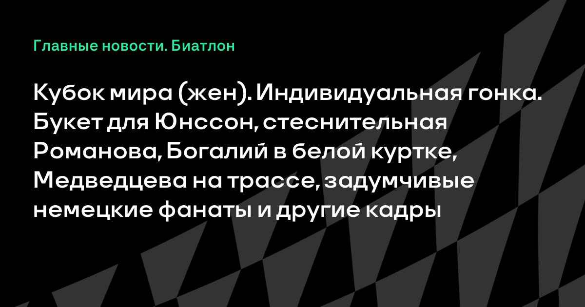 Кубок мира (жен). Индивидуальная гонка. Букет для Юнссон, стеснительная Романова, Богалий в белой куртке, Медведцева на трассе, задумчивые немецкие фанаты и другие кадры