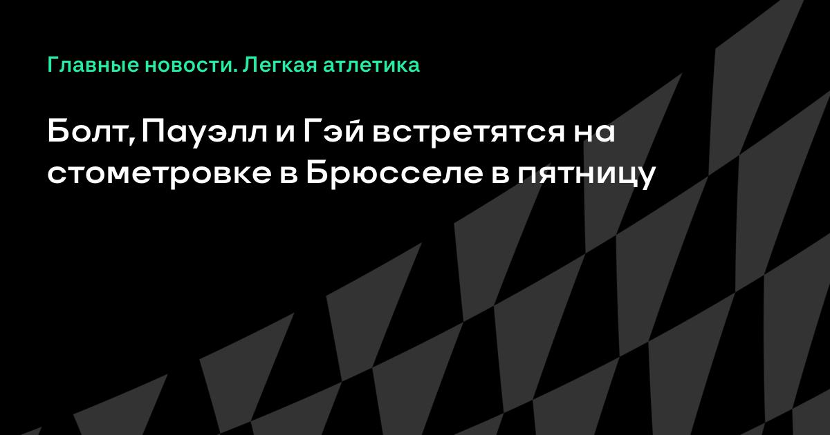 На пятом этапе «Золотой лиги», который пройдет в пятницу в бельгийском Брюсселе, на дистанции 100 метров выступят ямайские бегуны Асафа Пауэлл и Усэйн Болт, а также американский спринтер Тайсон Гэй. Трем этим спортсменам принадлежат 10 лучших результатов на стометровке в мире.