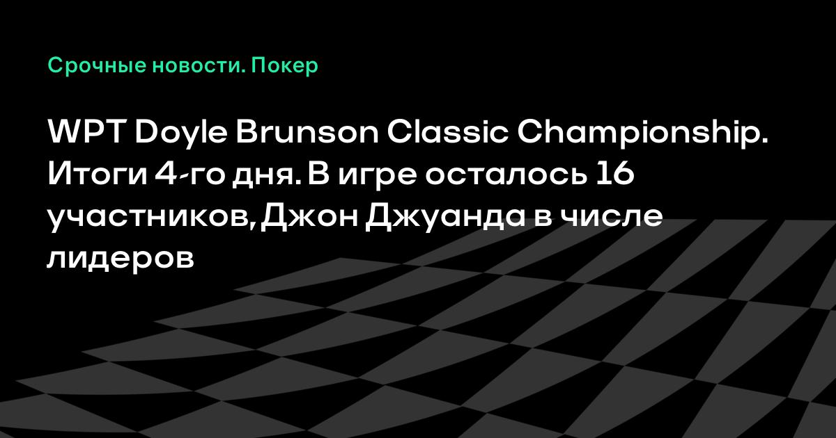 По итогам четвертого дня турнира Doyle Brunson Classic Championship, который проходит в рамках WPT, в игре осталось 16 участников.