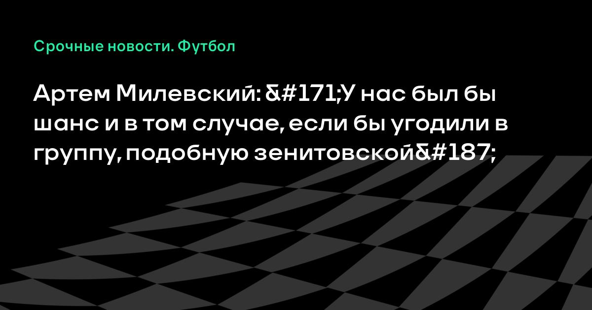 Артем Милевский: «У нас был бы шанс и в том случае, если бы угодили в группу, подобную зенитовской»