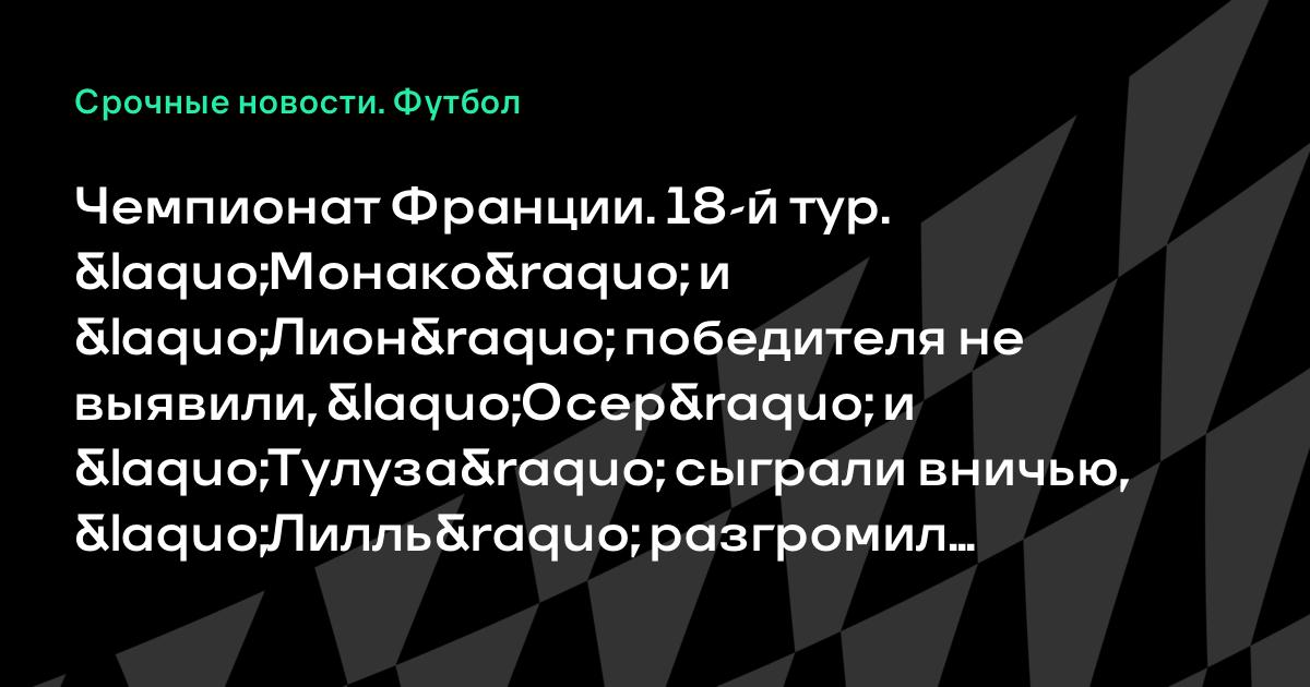 Чемпионат Франции. 18-й тур. «Монако» и «Лион» победителя не выявили, «Осер» и «Тулуза» сыграли вничью, «Лилль» разгромил «Ле-Ман» и другие результаты