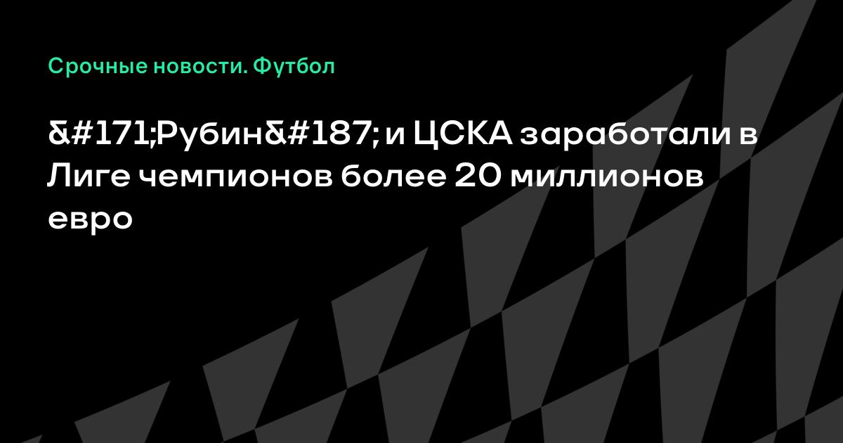 ЦСКА и «Рубин» по итогам группового раунда Лиги чемпионов получат более 20 миллионов евро призовых. Армейскому клубу выплатят 12,9 миллиона евро, а казанскому 9,1.