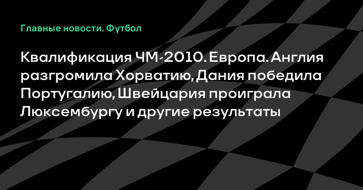 Квалификация ЧМ-2010. Европа. Англия разгромила Хорватию, Дания победила Португалию, Швейцария проиграла Люксембургу и другие результаты