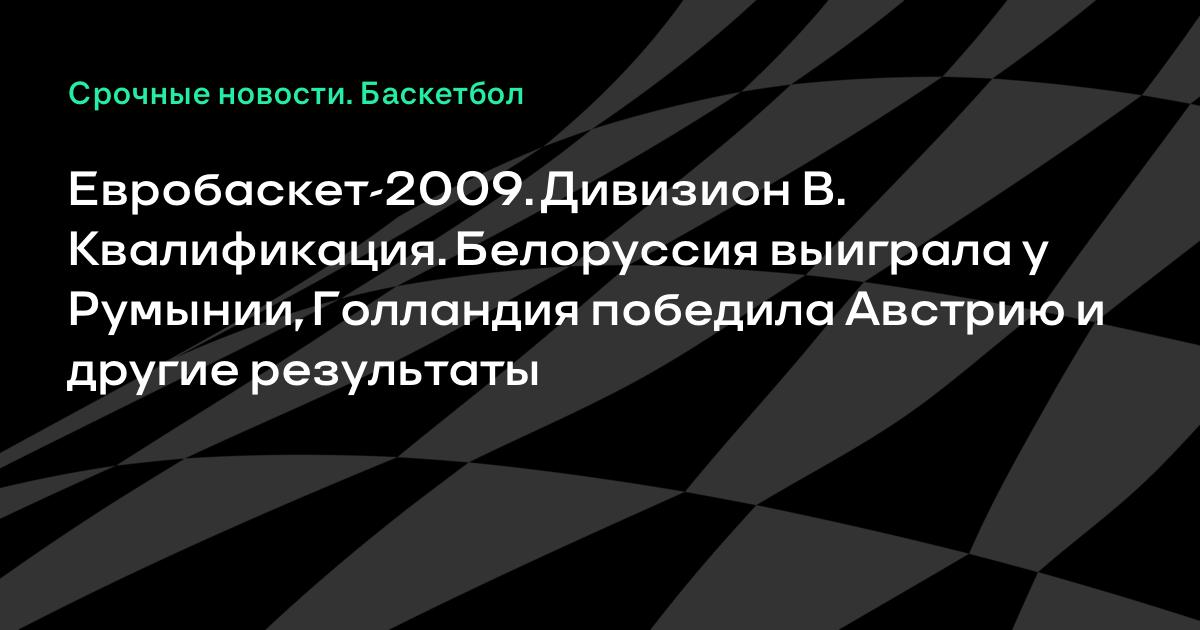 Евробаскет-2009. Дивизион В. Квалификация. Белоруссия выиграла у Румынии, Голландия победила Австрию и другие результаты