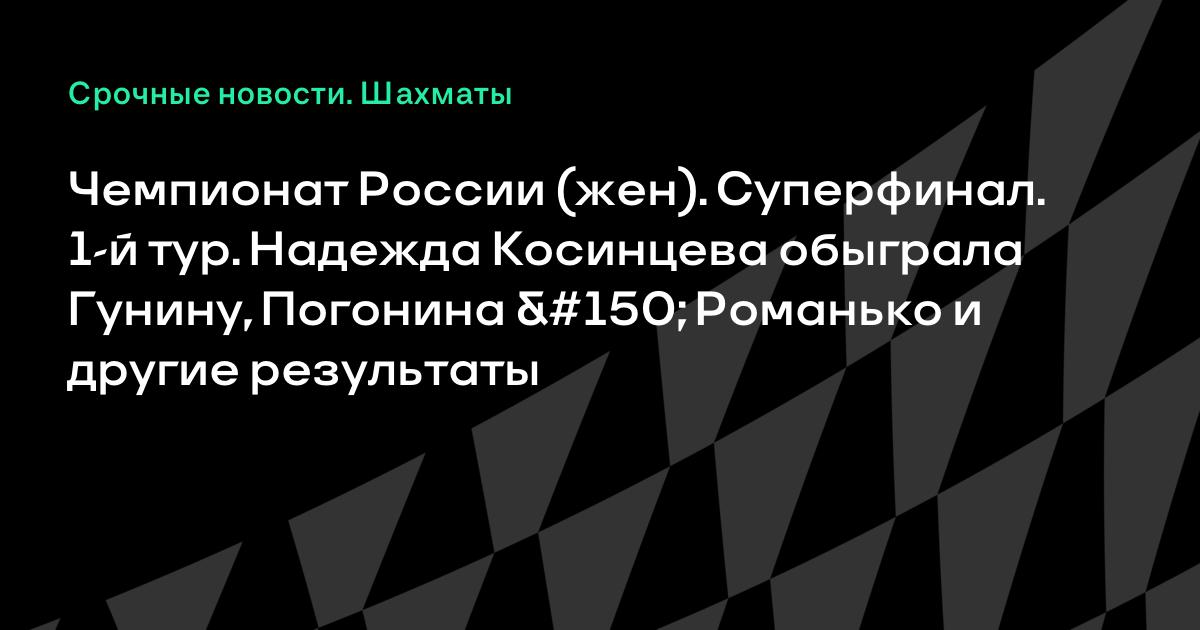 Чемпионат России (жен). Суперфинал. 1-й тур. Надежда Косинцева обыграла Гунину, Погонина  Романько и другие результаты
