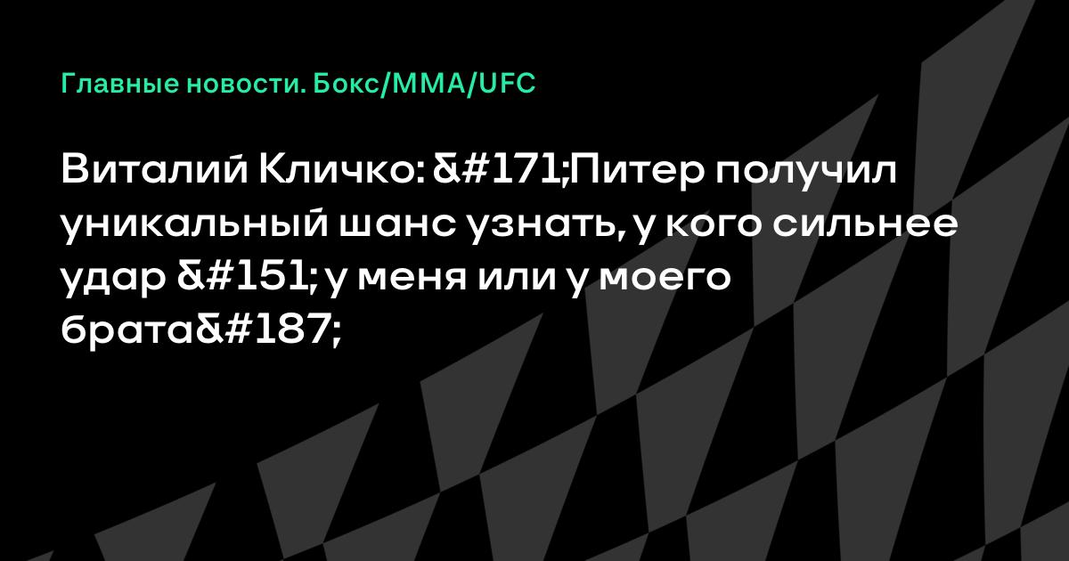 Виталий Кличко: «Питер получил уникальный шанс узнать, у кого сильнее удар у меня или у моего брата»