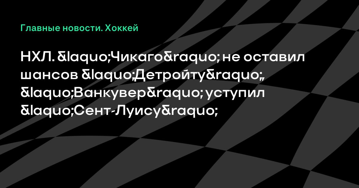 НХЛ. «Чикаго» не оставил шансов «Детройту», «Ванкувер» уступил «Сент-Луису»